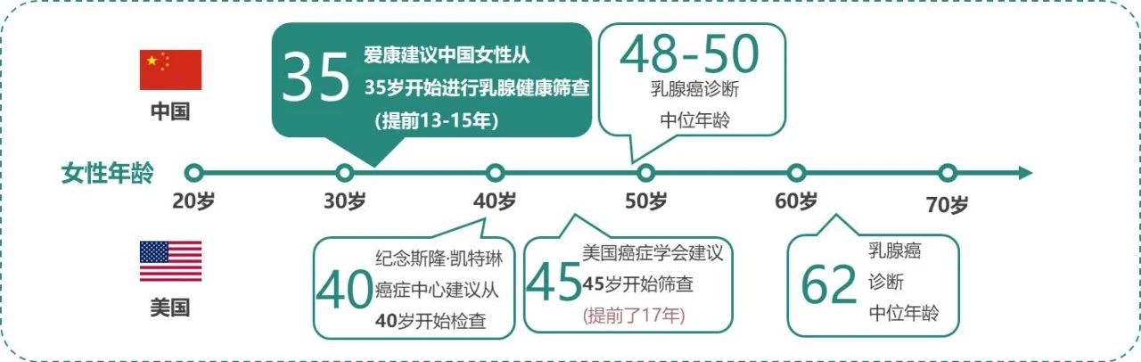 定期进行健康体检是早期发现乳腺疾病的重要措施。张黎刚提到:“基于中国女性乳腺癌诊断中位年龄为48岁-50岁,爱康建议中国女性从35岁开始,每年乳腺检查频率建议1年1次;如果年龄大于35岁,且有乳腺癌家族史女性,建议缩短到半年一次。”