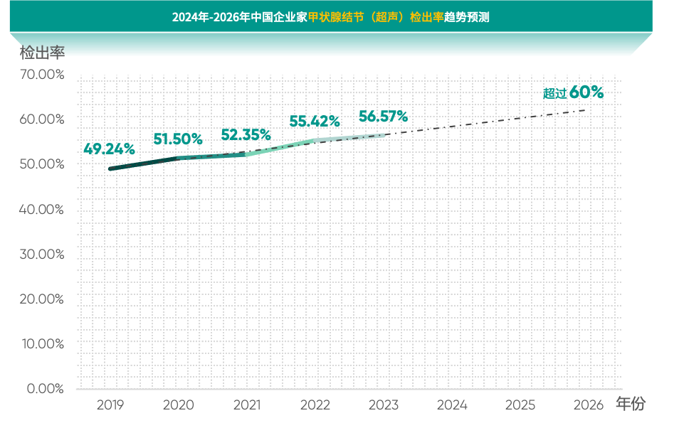 预测结果显示:到2026年,甲状腺结节(超声)检出率预计有可能超过60%;